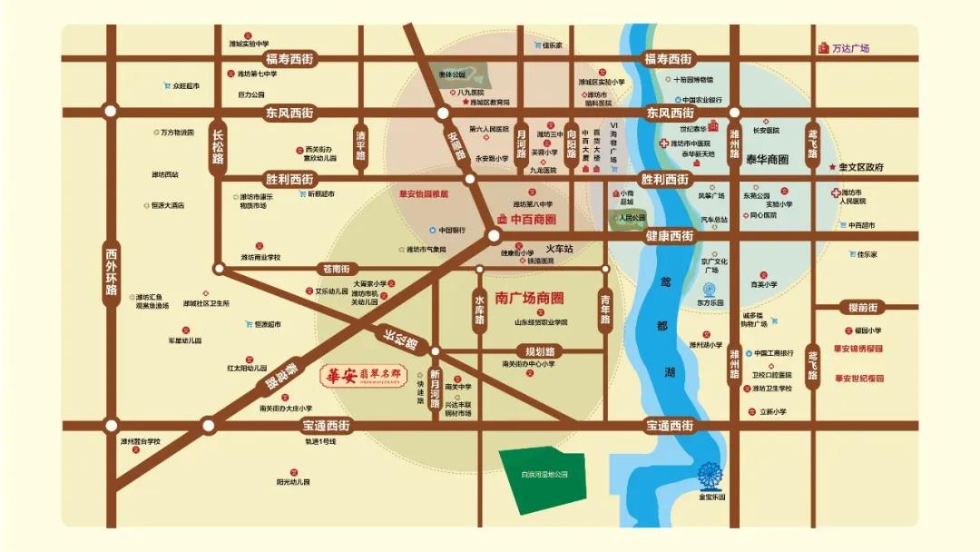 緊鄰濰城主干道新月河路,小商品城市場近在咫尺,開車省時(shí)暢游泰華商圈和中百商圈。