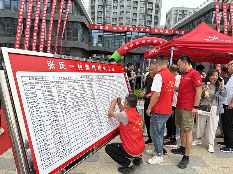 交房現(xiàn)場,“南張氏·春風里盛大交付 恭迎業(yè)主回家”的紅色標語格外引人矚目,村民們早早來到交房現(xiàn)場,個個喜笑顏開,都在等待著叫號分房。