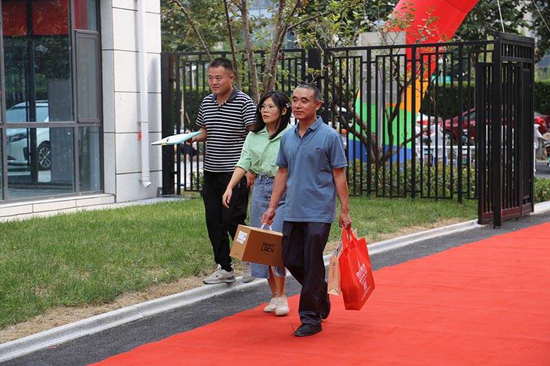 在交付現(xiàn)場,暖心的歸家標語、鮮艷的紅毯鋪地、氛圍感四溢的美陳,入目皆是美好盛景,處處洋溢著歡迎華安家人歸家的喜悅氛圍。