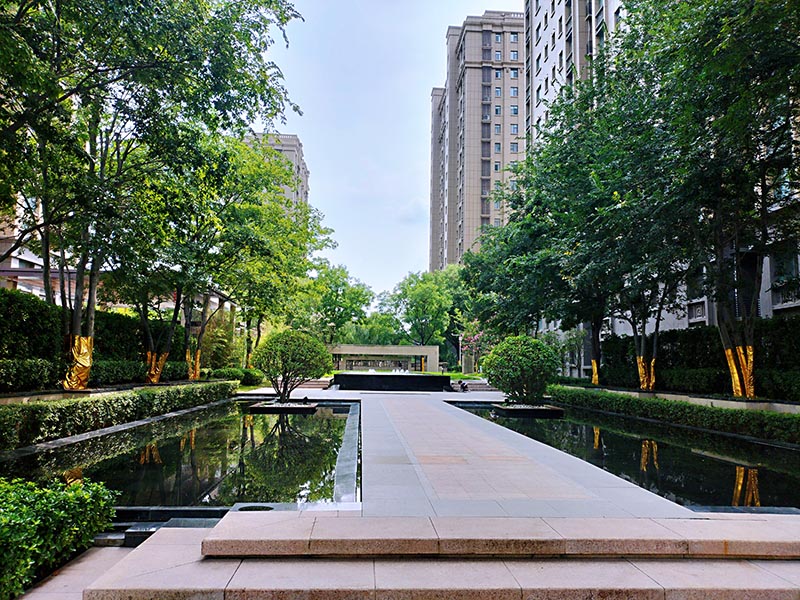 開闊的水面,潺潺的流水聲,軸線對應,步移景異,每一處都呈現(xiàn)出不同的層次與視野。居住其間,得到的即是內(nèi)心的寧靜。